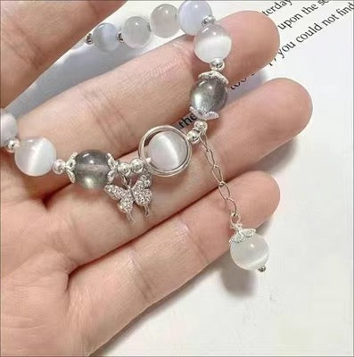 Crystal Butterfly Opal Beads Elastic rope Bracelet